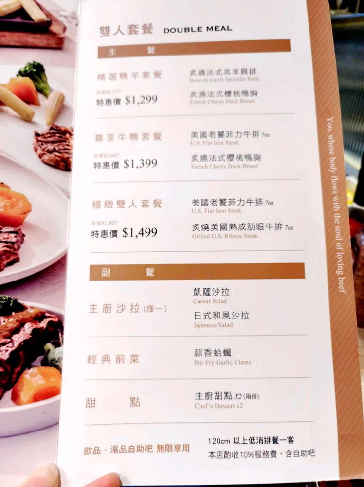 幾份主餐擺在桌上,其實像不同個性的人同桌。和牛細緻、肩小排豪邁、菲力乾淨、肋眼滑順,各自站在自己的位置。最後我們不約而同更喜歡鐵板的熱度,勝過安靜的瓷盤。或許不是部位的差異,而是那份持續冒著溫度的感覺,更貼近當下的用餐氛圍。